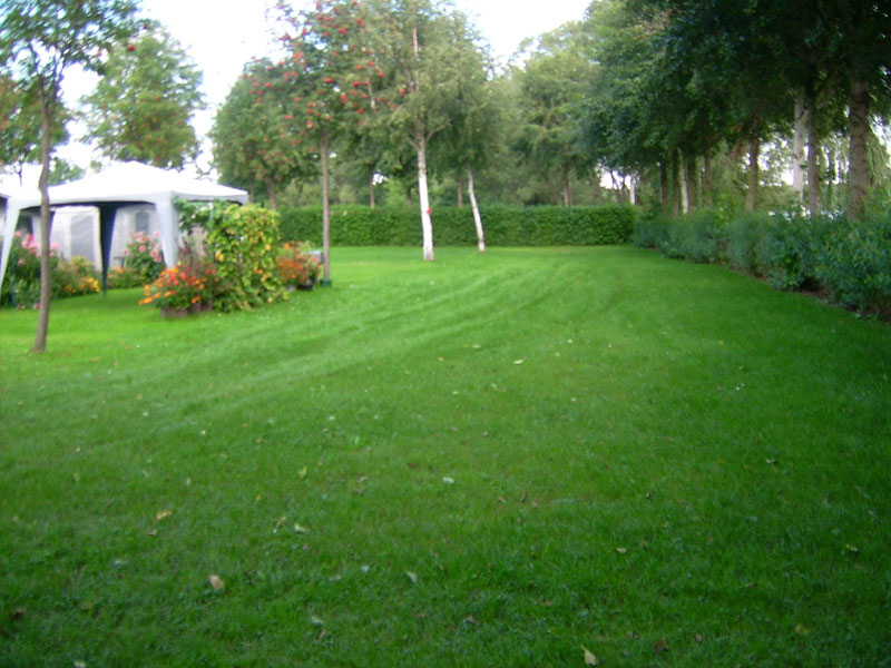Der Campingplatz liegt auf einer schönen gepflegten Rasenfläche.
